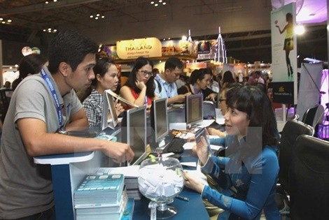 Hành khách mua vé máy bay của Vietnam Airlines. (Ảnh: Phương Vy/TTXVN)