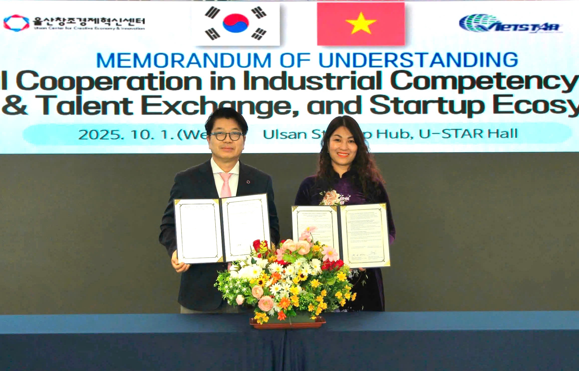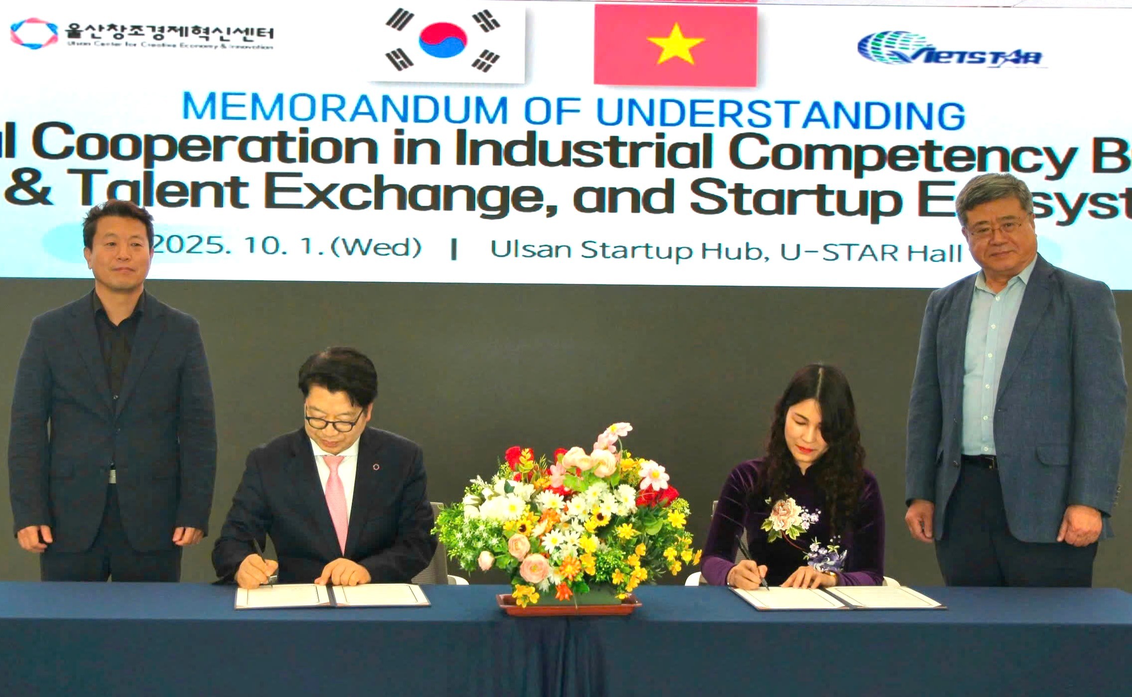 Ngày 1/10 tại Hàn Quốc, Trung tâm Kinh tế và Đổi mới Sáng tạo Ulsan (UCCEI) và Viện Quản lý & Tư vấn VIETSTAR đã ký kết Biên bản Ghi nhớ (MOU) nhằm thúc đẩy hợp tác song phương trong lĩnh vực Giáo dục, Đào tạo Lãnh đạo cho các ngành Công nghiệp, trao đổi nhân tài và phát triển hệ sinh thái khởi nghiệp.