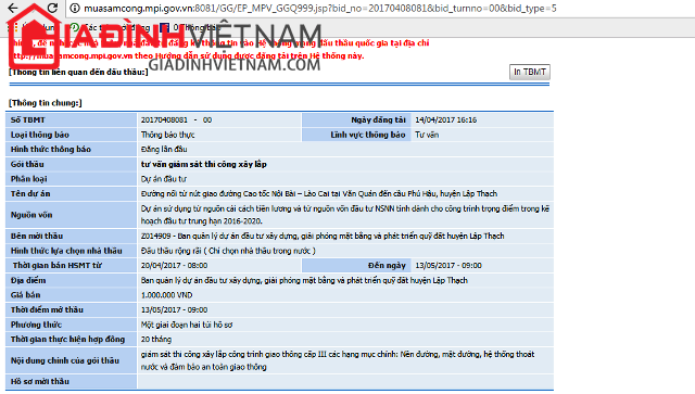 Liên quan đến vụ việc này, trước đó, báo Gia đình Việt Nam nhận được phản ánh, trong quá trình tổ chức đấu thầu gói thầu đường nối từ nút giao đường cao tốc Nội Bài - Lào Cai tại Văn Quán đến cầu Phú Hậu, chủ đầu tư là UBND huyện Lập Thạch đã “ưu ái” cho nhà thầu địa phương.
