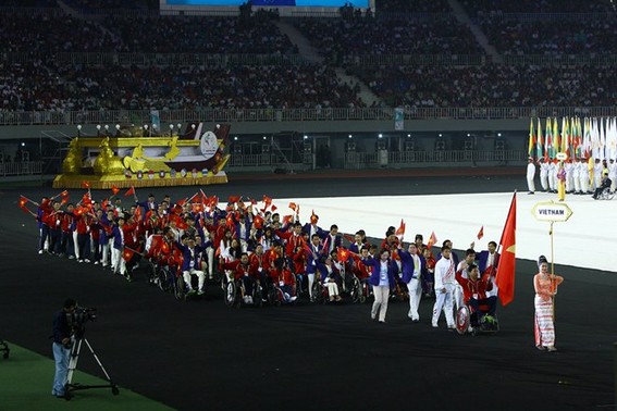 Đoàn Thể thao Việt Nam diễu hành tại lễ khai mạc Para Games 7. (Ảnh: Huy Hùng/TTXVN)