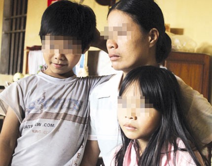 Chị Th và các con hụt hẫng sau cái chết đột ngột của anh Trường. Ảnh: PV