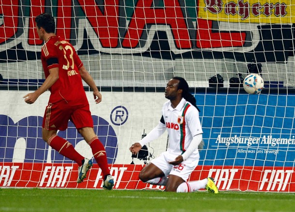 Tuy vậy việc thiếu vắng tiền vệ chủ chốt Bastian Schweinsteiger đã khiến Bayern phải rất nhọc nhằn mới đánh bại được Augsburg trong trận derby xứ Bavaria dù đến phút 28 của hiệp 1, đội khách đã dẫn trước 2-0 sau pha xâm nhập bên cánh trái và dứt điểm hiểm hóc của Ribery. Augsburg đã chứng tỏ rằng dù đang xếp bét bảng ở Bundesliga nhưng trong một trận derby, họ vẫn có thể gây khó dễ cho các nhà ĐKVĐ. Đến phút 59, cầu thủ người Nhật Bản Hajime Hosogai đã gỡ lại 1 bàn cho đội chủ nhà bằng một pha dứt điểm cận thành quyết đoán. Dù Alaba đã phá bóng nhưng trọng tài xác định rằng bóng đã lăn qua vạch vôi.