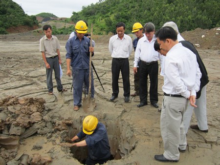 Cơ quan chức năng kiểm tra tại “túi bùn độc hại” khu vực Mỏ sắt Phong Hanh (xã An Định, Tuy An, Phú Yên).