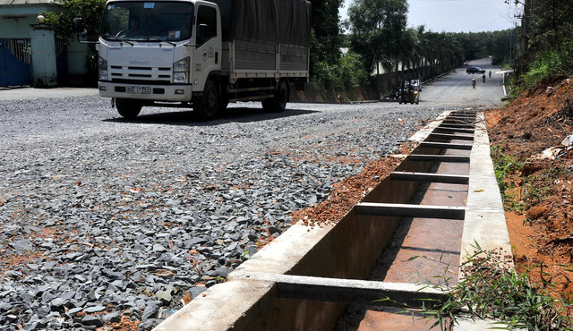 Đường D1 và mương thoát nước trong Cụm công nghiệp Thạnh Phú (ấp Ông Hường, xã Thiện Tân, huyện Vình Cửu, Đồng Nai), nơi xảy ra vụ việc - Ảnh: A LỘC