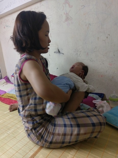 Từ khi chăm sóc cháu bé, cuộc sống gia đình của chị Hòa bị đảo lộn nhưng chị vẫn quyết tâm nuôi cháu (Ảnh Đức Khương).