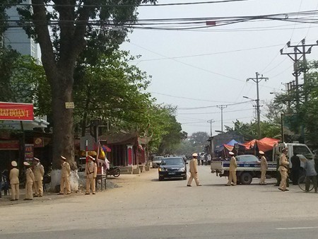 Để giữ trật tự sau vụ diễu quan tài, Công an Vĩnh Phúc đã phải lập chốt trên phố.