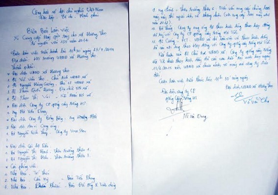 Biên bản làm việc giữa xã Hương Thọ và đơn vị cung ứng máy gặt cho người dân