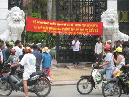 Ngày 2.8, nhiều nông dân nuôi cá tiếp tục kéo đến biệt thự của bà Diệu Hiền đòi nợ và bàn tán xôn xao vụ bà Hiền bán 25 triệu cổ phiếu từ năm 2011.
