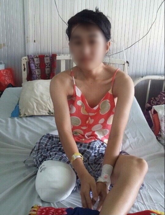 Nữ sinh V. buộc bị cưa chân do bó bột quá chặt dẫn đến hoại tử. Ảnh: Gia đình cung cấp