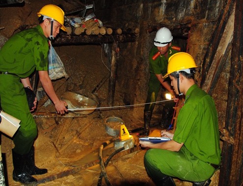 Công an tỉnh Lâm Đồng khám nghiệm hiện trường vụ sập hầm thủy điện sáng 20/12. Ảnh: Văn Thành