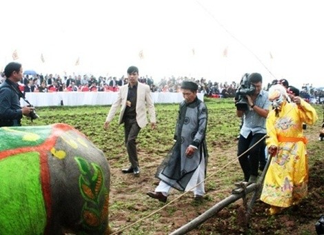 "Vua" đi cày trong lễ hội Tịch Điền 2015