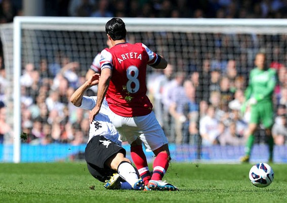 Arsenal đã giành chiến thắng 1-0 trên sân của Fulham với pha lập công duy nhất của Mertesacker để tiếp tục duy trì tham vọng top 4. Nhưng tình huống đáng chú ý nhất trong trận đấu lại là chiếc thẻ đỏ của Steve Sidwell sau pha vào bóng nguy hiểm với Arteta, khiến Fulham phải đá thiếu người ngay từ phút thứ 11.