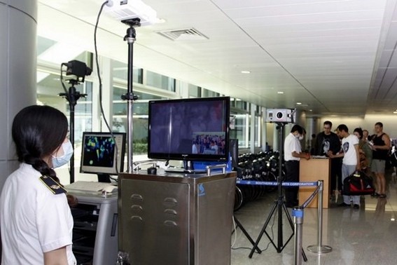 Kiểm dịch y tế cho du khách tại Sân bay. (Ảnh: TTXVN)