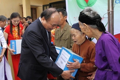 Phó Thủ tướng Nguyễn Xuân Phúc tặng quà các gia đình khó khăn xã Cao Kỳ. Ảnh: VGP/Lê Sơn