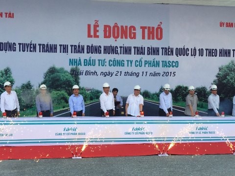 Đại diện nhà đầu tư Tasco, ông Phạm Quang Dũng, CTHĐQT cho biết: QL 10 đoạn qua thị trấn Đông Hưng, huyện Đông Hưng, tỉnh Thái Bình cơ bản có quy mô đạt tiêu chuẩn đường cấp III đồng bằng, 02 làn xe cơ giới và 02 làn xe thô sơ (Bn=12m, Bm=11m). Thị trấn Đông Hưng có mật độ dân cư đông đúc, sinh sống dọc tuyến QL 10. Vào giờ cao điểm, người từ các cơ quan, xí nghiệp, trường học, bệnh viện đóng trên địa bàn cùng tham gia giao thông nên tình trạng ùn tắc thường xuyên xảy ra, tiềm ẩn nhiều nguy cơ dẫn đến tai nạn giao thông, hạn chế khả năng lưu thông trên đoạn tuyến.