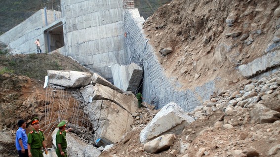 Tại hiện trường, công an và đại diện viện kiểm sát nói vẫn đang trong quá trình tìm hiểu vụ việc nên chưa thể đưa ra bất cứ thông tin gì vào lúc này. Trong khi đó, hai bên phía thân đập, công nhân vẫn cho máy ủi thi công bạt núi. Theo quan sát của chúng tôi, bức thành còn lại trên thân đập xuất hiện nhiều vết nứt.