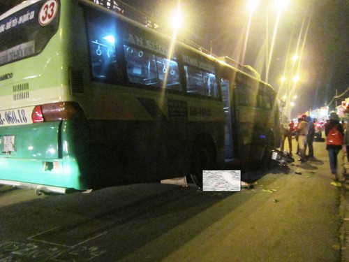 Cú va chạm mạnh khiến cả xe và người nạn nhân bị cuốn vào gầm, bị xe buýt kéo rê đi gần 10 mét. Người phụ nữ bị bánh sau xe cán qua tử vong tại chỗ.