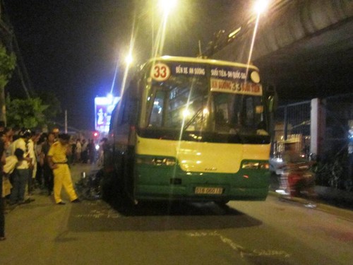 Sau va chạm với xe buýt người phụ nữ cùng xe máy té xuống đường, bị bánh sau cán qua tử vong tại chỗ.