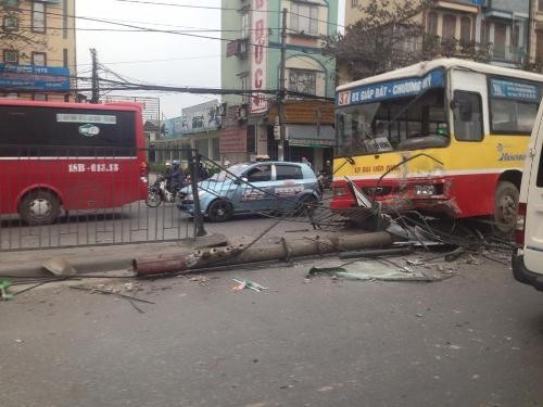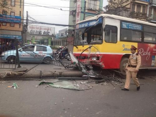 Vào khoảng 8 giờ sáng ngày 4/1, xe buýt BKS 29B - 067.65 lưu thông theo hướng Giải Phóng – Hà Nội đoạn qua số nhà 1069, thì bất ngờ mất lái tông thẳng vào dải phân cách, húc đổ một cột đèn chiếu sáng.