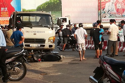 Xe tải cuốn nhiều xe gắn máy xuống dưới gầm