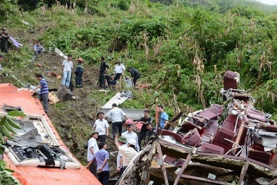 Hiện trường vụ tai nạn xe khách ở Lào Cai ngày 1/9 vừa qua khiến 14 người tử vong. (Ảnh: Lục Văn Toán/TTXVN)