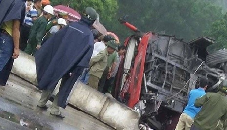 Theo đó vào thời gian trên, xe khách giường nằm BKS 74B-007.02, lưu thông từ hướng Nam ra cầu Bến Thủy. Khi đến vị trí trên đã bất ngờ nổ lốp trước khiến chiếc xe lao sang trái đường húc đổ khoảng 30 mét dải phân cách cứng, sau đó đầu xe quay 180 độ theo hướng ngược lại, vỡ nát.