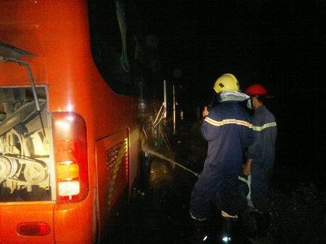 Xe khách bốc cháy trong đêm, hàng chục hành khách hú vía.
