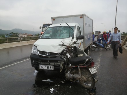 Tại hiện trường, đầu chiếc xe tải, xe máy đều bị biến dạng, hư hỏng nặng. Nạn nhân trong vụ việc được xác định tên Quế (25 tuổi,trú tại thị trấn Tào Xuyên, Tp. Thanh Hóa).