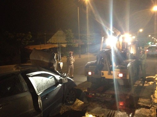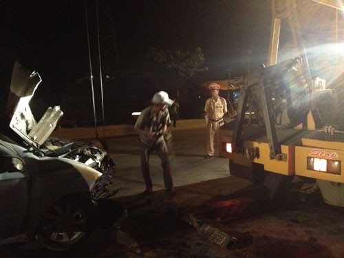 Xe cứu hộ đưa xe gặp nạn rời khỏi hiện trường