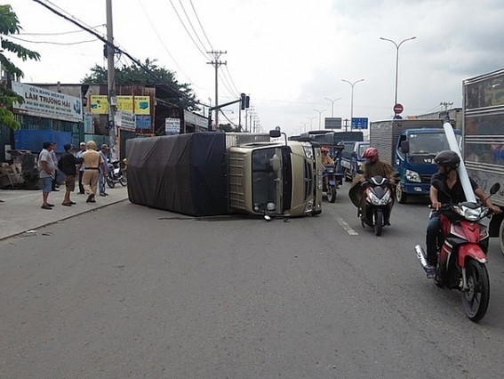 Thông tin ban đầu, vào chiều 15-9, xe tải 1,2 tấn biển số TP.HCM do nam tài xế khoảng 35 tuổi điều khiển lưu thông trên đường Tân Kỳ Tân Quý hướng ra quốc lộ. Khi xe ra đến Quốc lộ 1A, tài xế cho xe rẽ trái để di chuyển về hướng vòng xoay An Lạc, tuy nhiên do cua gấp hàng hoá trên xe dồn về một bên, phương tiện mất thăng bằng lật ngang đường.