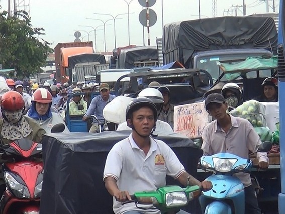 Ảnh hưởng từ sự cố khiến giao thông qua khu vực ùn ứ. Ảnh H. Tâm.