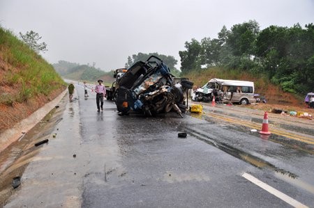Vụ tai nạn đã khiến anh Vũ Văn Liêm (Lái xe 16 chỗ) và anh Đinh Văn Huy đều ở Hải Hậu, Nam Định chết ngay tại chỗ, 7 người khác bị thương nặng đang được cấp cứu tại BV tỉnh.