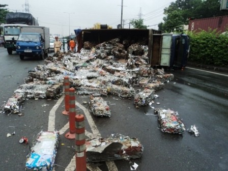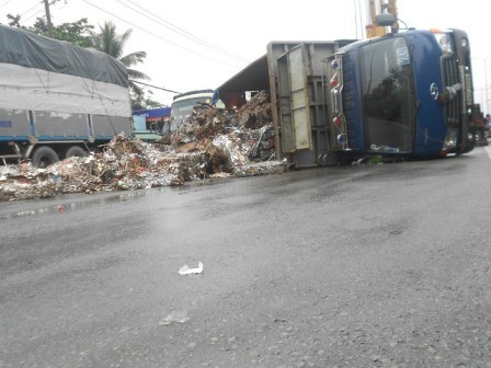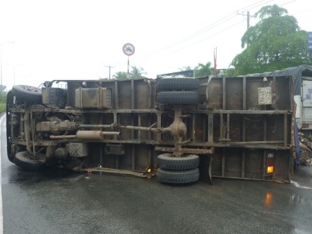 Để tránh gây tai nạn nghiêm trọng, tài xế Cường phải đánh lái gấp làm chiếc xe tải mất thăng bằng lật ngang giữa quốc lộ. Vụ tai nạn làm tài xế Cường bất tỉnh và kẹt trong cabin xe, người dân nhanh chóng chạy đến phá cửa xe giải cứu và đưa đến bệnh viện cấp cứu. Chiếc xe tải lật nhào nằm chắn trên quốc lộ cộng với nhiều tấn phế liệu đổ ra đường khiến giao thông ở khu vực này ùn tắc.