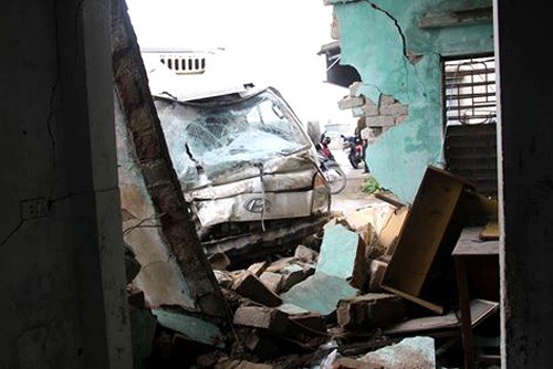 Tại hiện trường chiếc xe tải bị hư hỏng rất nặng, phần ca bin xe bẹp dúm, một chiếc lốp trước bị nổ. Căn nhà của bà Phiến ngổn ngang, nhiều đồ đạc bị hư hại nặng. Tài xế chiếc xe tải bị thương được người dân giải cứu sau đó.