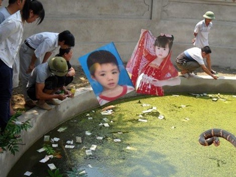 Thấy kỳ bí nhiều người đã ném tiền xuống dưới giếng để phúng “vong hồn” 2 cháu bé. Theo một người dân trong làng kể lại, khi vứt tiền xuống dưới giếng thì lập tức 2 con rắn đó liền trườn lên và quấn lấy những đồng tiền ấy.