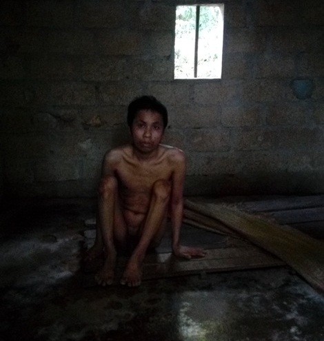 Vì không có tiền chữa trị thường xuyên, nên bệnh tình của anh Hiền ngày càng nặng, anh thường nổi điên đập phá, tự xé quần áo, đánh đập cả người bố của mình. Dù không bao giờ muốn thế, nhưng gia đình ông không còn cách nào khác là vay mượn bà con, xây một căn buồng nhỏ ở sau nhà để “nhốt” con lại trong đó.