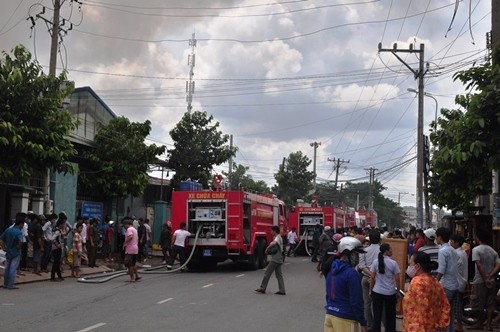 10 xe cứu hỏa cùng hàng chục chiến sỹ thuộc lực lượng PCCC tỉnh Bình Dương nhanh chóng có mặt tại hiện trường để dập lửa.