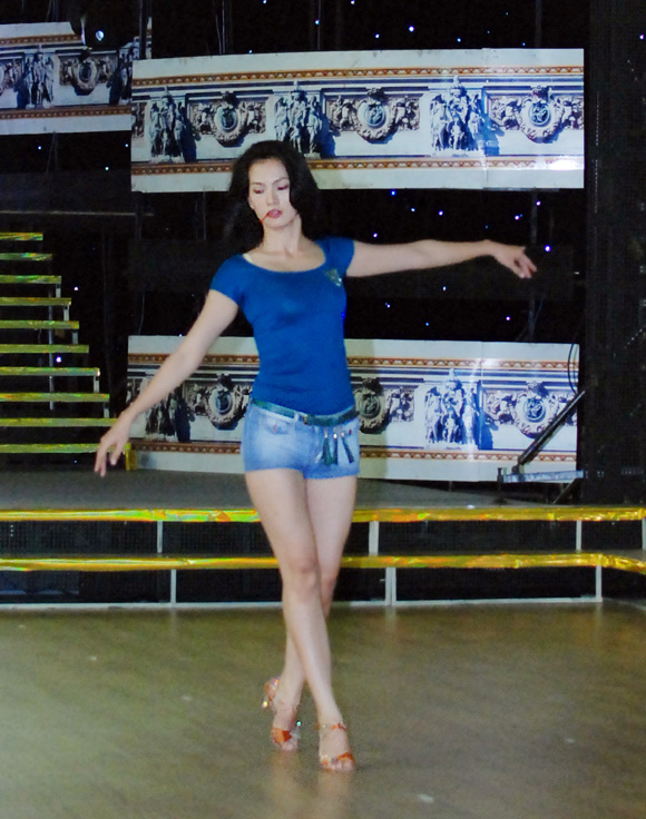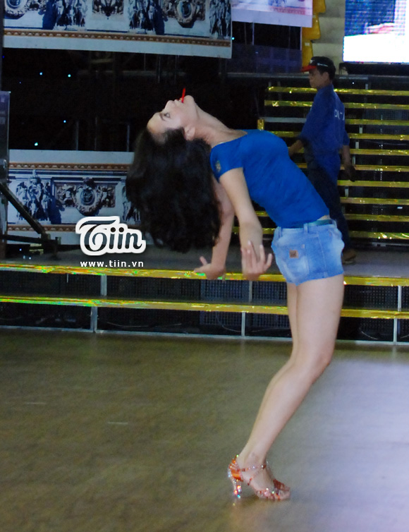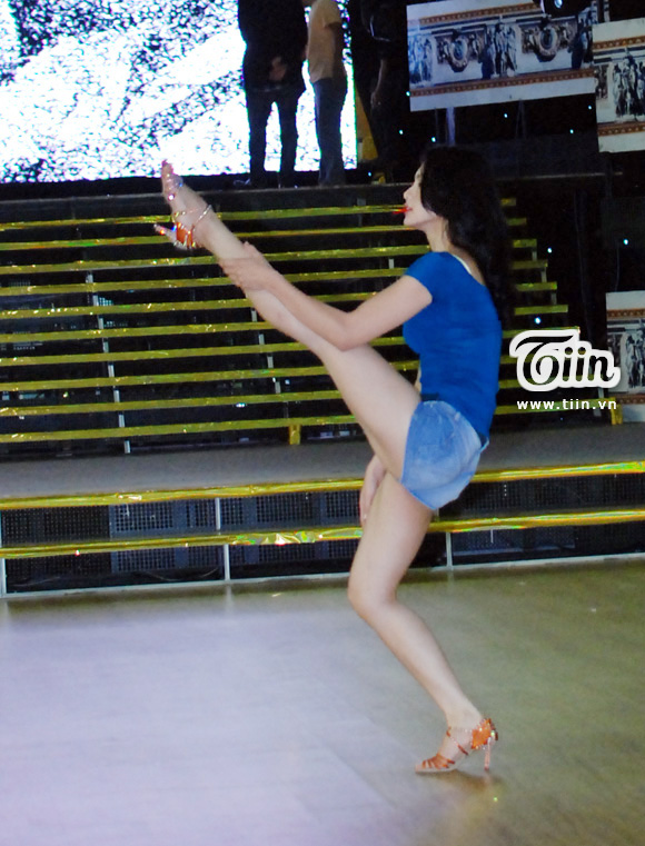 Khi bạn nhảy chưa tới, một mình Anh Thư một sàn tập. Chị ấy tranh thủ khởi động các khớp và "đi vài đường" cơ bản của dancesport và "xoạc" chân rất điêu luyện nữa. Bà mẹ một con trẻ trung với áo thun xanh, quần sooc cực ngắn khoe vẻ đẹp cuốn hút. Điểm đáng chú ý là chị ấy ngậm kẹo mút khi tập trông rất đáng yêu nhé các bạn.
