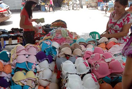 Bà Phạm Thị Thuý, giám đốc công ty Pháp Việt chuyên sản xuất áo lót, cho biết: “Để may một chiếc áo ngực, tiền công thợ đã là 30.000 đồng, 25 loại nguyên phụ liệu phải đặt mua từ nhiều nơi, số lượng lớn thì giá thành cũng khoảng 50.000 – 58.000 đồng/chiếc, cộng các khoản thuế, tiền mặt bằng, chiết khấu bán lẻ… giá áo ngực Việt Nam không thể nào rẻ như hàng đang có ở chợ được”. Bên cạnh đó, theo bà Thuý, muốn bỏ hàng ra chợ, một mặt phải trường vốn cho tiểu thương mua hàng trả chậm, việc thu hồi công nợ khá vất vả, mặt khác tiểu thương không thích lấy hàng Việt vì giá cao.