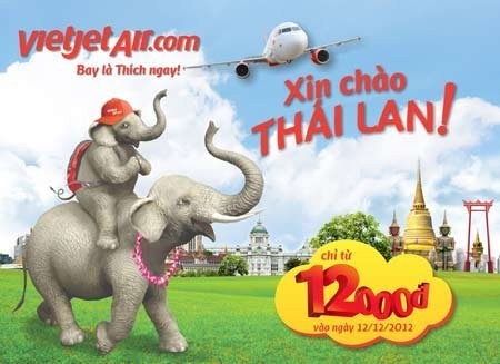 Đặc biệt, để ghi dấu sự kiện này, VietJetAir triển khai chương trình khuyến mãi “Xin chào Thái Lan chỉ với 12.000 đồng”.