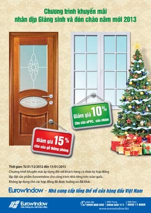 Từ 1/12/2012 đến 15/1/2013, Eurowindow triển khai chương khuyến mãi giảm giá 10% đối với sản phẩm nhựa (uPVC), cửa nhôm và nhôm gỗ, giảm giá 15% đối với sản phẩm cửa gỗ.