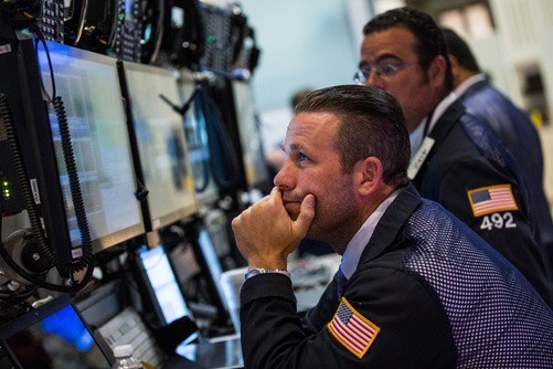 Các nhà đầu tư theo dõi biến động của chỉ số chứng khoán tại sàn giao dịch ở New York ngày 11/8.Ảnh: AFP