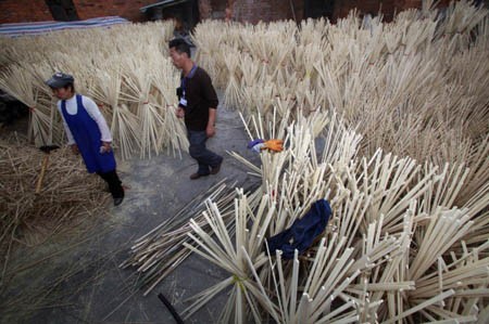 Bột đá talc dùng để loại bỏ lớp sần giáp trên đũa tre.