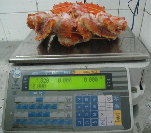 Cũng theo bà Hạnh, loại cua Hoàng đế có màu đỏ là loại quý hiếm nhất. Sau khi đánh bắt được, người ta cho vào cấp đông, đóng gói vào hộp xốp và xuất khẩu sang nhiều nước trên thế giới. Siêu thị nhập 7 con, chỉ trong tuần đầu tiên đã bán được 3 con.