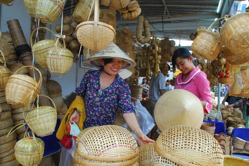 Du khách tìm mua các sản phẩm sản xuất từ dừa - Ảnh : Hoàng Thạch Vân