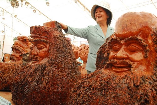 Phúc Lộc Thọ được làm từ gốc dừa - Ảnh : Hoàng Thạch Vân