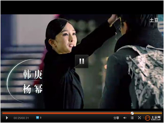 Không chỉ chụp ảnh và quay quảng cáo, cặp đôi mỹ nam mỹ nữ này còn tham gia làm khách mời trong bộ phim truyền hình mạng “Vì khát vọng sáng tạo” do Pepsi và Tudou (trang chia sẻ video trực tuyến lớn nhất Trung Quốc) hợp tác sản xuất. Mới đây, Dương Mịch và Han Geng đã gia nhập đoàn làm phim và tiến hành quay những phân cảnh của mình.