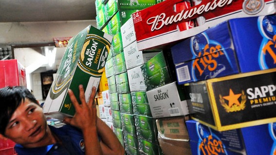 Bia các loại được bán tại đại lý trên đường Nguyễn Đình Chiểu, quận 3, TP.HCM