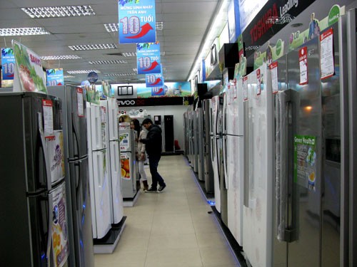 Siêu thị điện máy Trần Anh đua khuyến mại đồ điện lạnh kích cầu tiêu dùng, tuy nhiên lượng khách đến chưa nhiều. Ảnh: PT