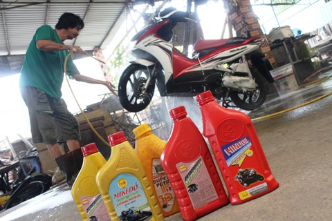 Ông Cư, chủ một tiệm sửa xe máy trên đường Nguyễn An Ninh, thị xã Dĩ An, cho biết nhiều người đem dầu nhớt giả đến tiệm ông chào bán với giá rẻ hơn hàng chính hãng cung cấp từ 10.000-20.000 đồng/chai. Tuy nhiên, ông khẳng định chỉ những người thợ sửa xe làm ăn chụp giật, làm ven đường nay đây mai đó mới mua hàng nhái, hàng giả về bán, chứ làm ăn có lương tâm không ai tiêu thụ hàng này. “Nhớt giả đổ vào chạy một lúc thì động cơ xe máy có vấn đề ngay vì không đảm bảo độ bôi trơn. Còn những loại nhớt 30.000 đồng/chai thì chất lượng cũng như vậy. Họ dùng nhớt thải nấu lại, giá rẻ nhưng không có chất lượng” - ông Cư tư vấn.